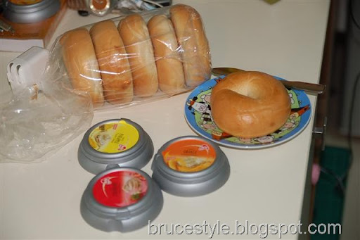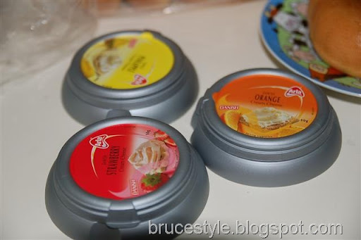 貝果加上這 Arla 牌水果口味的乳酪,不用加熱,直接吃,味道還不錯,不過說實在的,鳳梨口味的,味道很淡,幾乎沒有鳳梨味道,草莓的吃起來感覺有點怪,說不上來